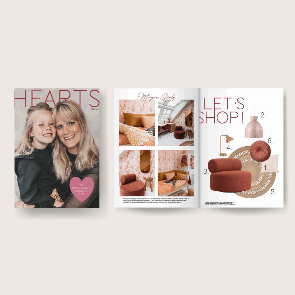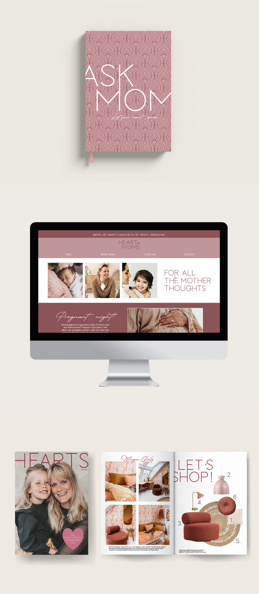 Met stipt op nummer 1 mijn favoriete project tijdens mijn opleiding op Nimeto Utrecht: restaurant Heart of Moms. Het bedenken van een concept, creëren van een huisstijl en uiteindelijk een compleet plaatje voor een restaurant speciaal voor moeders. Een plek waar vrouwen hun hart kunnen luchten over het moederschap. Heart of Moms kreeg een vrouwelijke uitstraling die tot in elk detail is doorvertaald in het restaurant. De gekozen patronen, kleuren, vormen en typografie komen terug in alles – van de menukaart tot website en het magazine.
